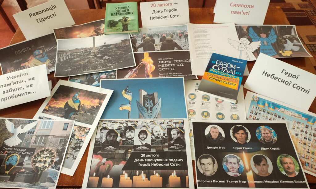 Учасники заходу переглянули тематичний відеофільм і фотовиставку, пригадали трагічні події січня-лютого 2014 року, поспілкувалися з безпосередніми учасниками Майдану – Володимиром Кравченком та Володимиром Шудриком. Майданівці поділилися пережитим, атмосферою єдності, взаємопідтримки й віри у зміни, що панували серед протестувальників. Під звуки тужливої пісні «Пливе кача…» присутні вшанували пам’ять тих, хто першим став до бою за чесну владу та людську гідність.
